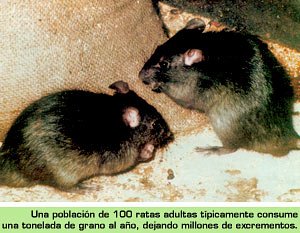 Las fábricas de alimentos para animales brindan a los roedores una enorme provisión de sus tres requisitos básicos: alimento, agua y albergue. Las fábricas de raciones y las bodegas de granos de Centro y Sudamérica tienen que lidiar con algunos roedores nativos (tales como Calomys spp. y Oryzomys spp.) de la familia Cricetidae, pero sus problemas principales son causados por las tres especies comensales y oportunistas de distribución mundial, el ratón casero (Mus domesticus) y dos tipos de ratas, la rata negra (Rattus rattus) y la rata parda (Rattus norvegicus). Su capacidad para medrar ante la presencia del hombre (comensal significa 'quien come en la misma mesa') los hace muy exitosos a costas de las industrias ganadera y de granos.La biología de estos animales parece ser causa de su enorme éxito en la vida, y por ello los administradores de graneros deben conocerla a fondo para poderlos combatir. Los roedores se reproducen con gran rapidez, son muy adaptables, y consumen o destruyen enormes cantidades de alimentos en relación con su peso. Alcanzan la madurez sexual a los dos o tres meses de edad, y durante su primer año producen 6 a 7 camadas de 6 a 10 crías.